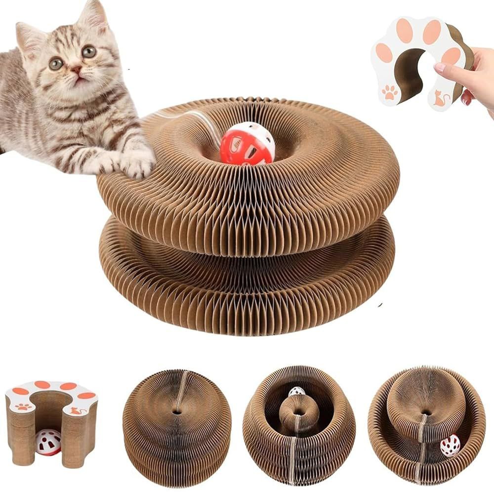 لعبة متعددة الاستخدامات للقطط معمولة من كرتون مضغوط على شكل وحدات ممكن تتفرد وتتني بأكتر من طريقة.
